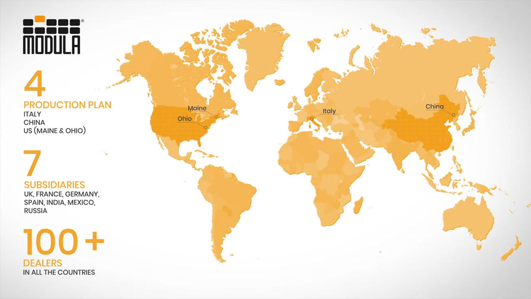 Modula is a more than 30 year old Italian house brand that designs and manufactures automated vertical warehouses suitable for any industrial sector or environment. Today, Modula has more than 20,000 clients around the world and capacity to produce more than 3,500 machines annually from its 4 production facilities in Italy (Salvaterra di Casalgrande, Reggio Emilia), 2 in USA (Lewiston, Maine and Franklin, Ohio) and China (Suzhou).